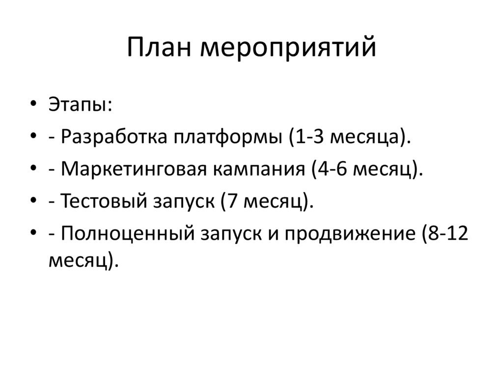 План мероприятий• Этапы: