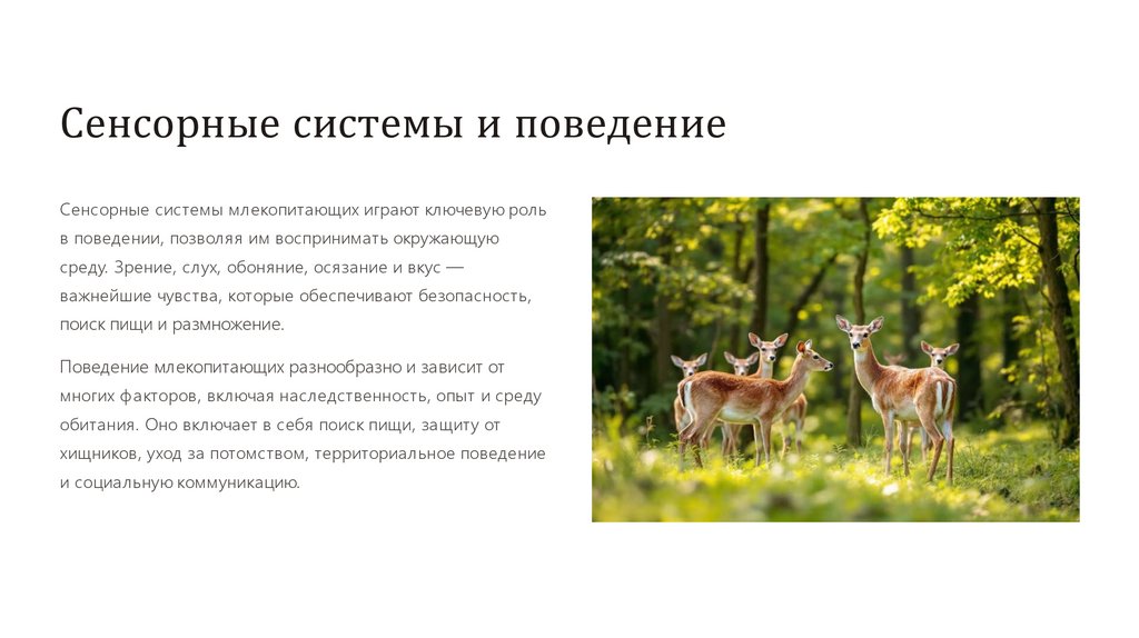 Сенсорные системы и поведениеСенсорные системы млекопитающих играют ключевую роль