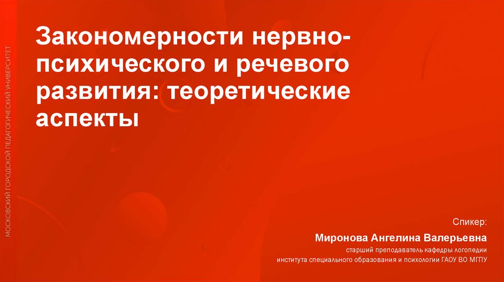 Закономерности нервнопсихического и речевогоразвития: теоретические