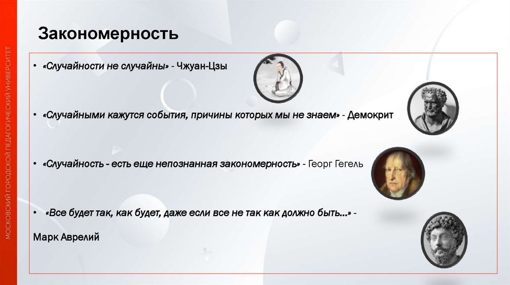 • «Случайность - есть еще непознанная закономерность» - Георг Гегель