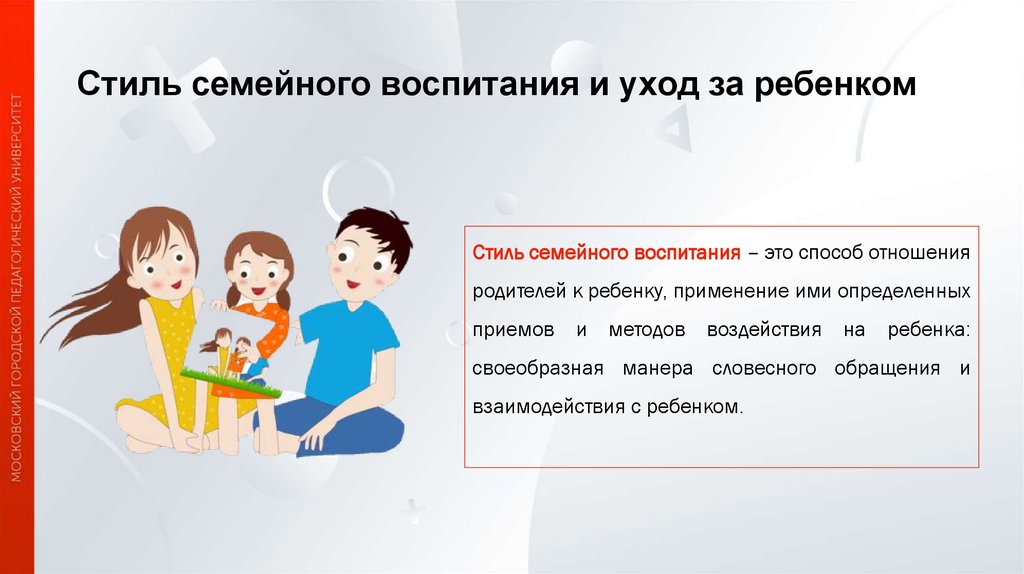 Стиль семейного воспитания и уход за ребенкомСтиль семейного воспитания – это способ отношения