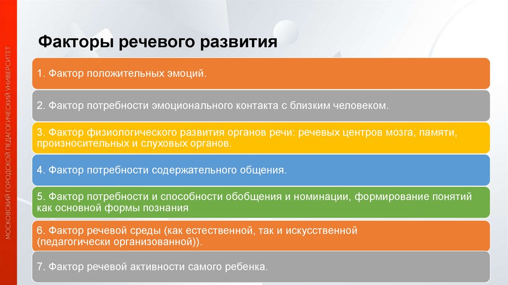 3. Фактор физиологического развития органов речи: речевых центров мозга, памяти,