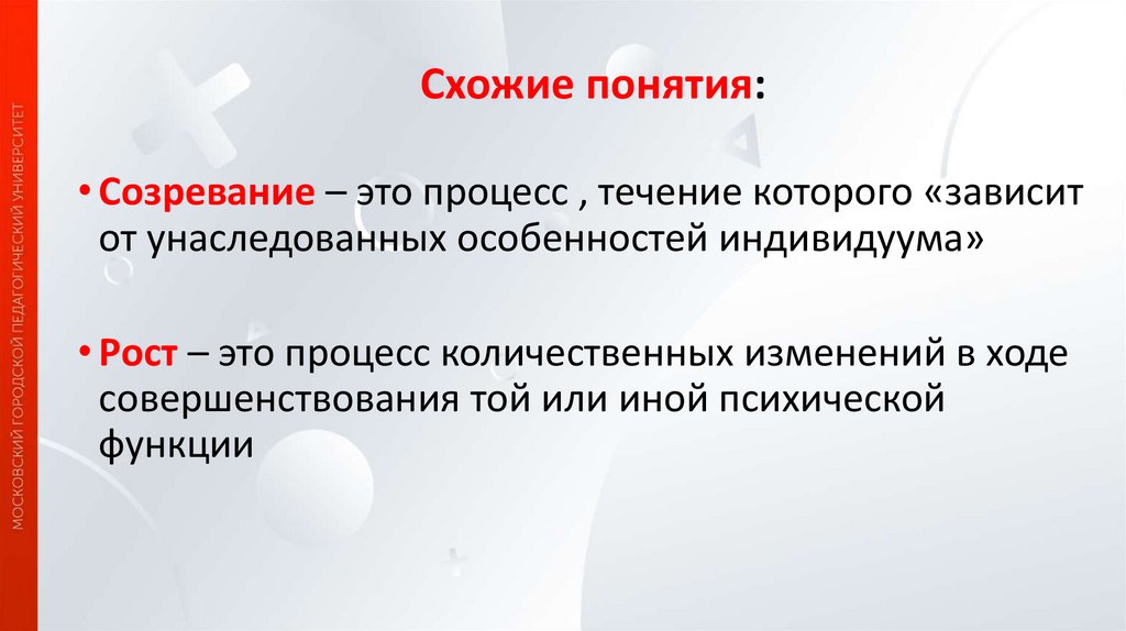 Схожие понятия:• Созревание – это процесс , течение которого «зависит