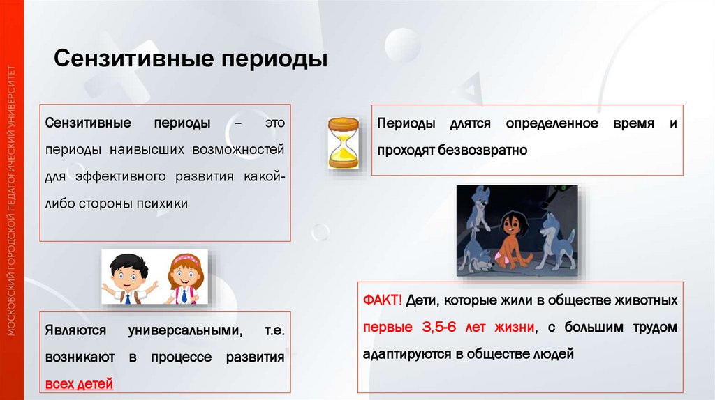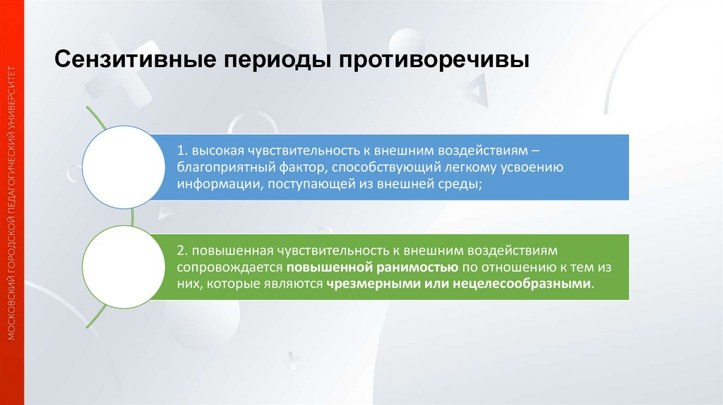 Сензитивные периоды противоречивы1. высокая чувствительность к внешним воздействиям –
