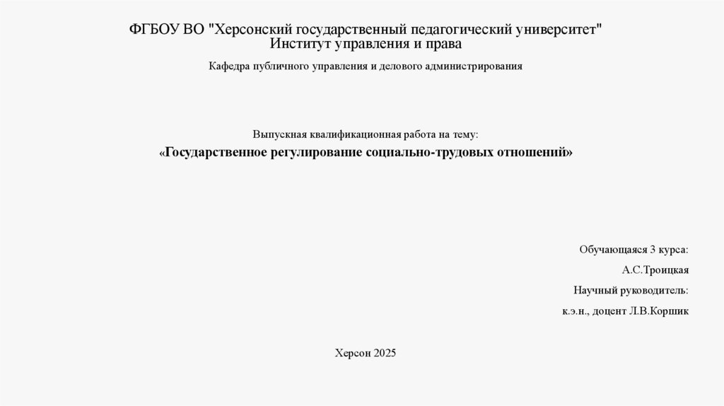 ФГБОУ ВО "Херсонский государственный педагогический университет"Институт управления и права