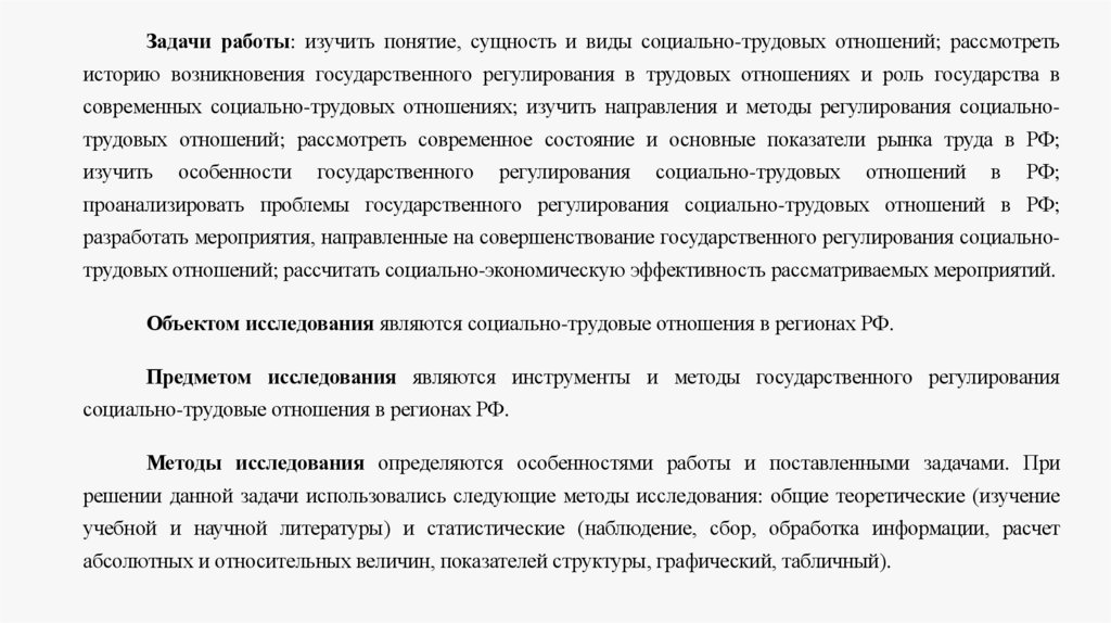 Целью работы является изучение государственного регулирования социально-трудовых