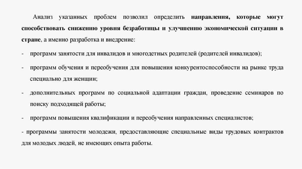 способствовать снижению уровня безработицы и улучшению экономической ситуации в