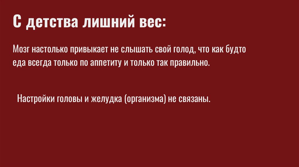 С детства лишний вес:Мозг настолько привыкает не слышать свой голод, что как будто