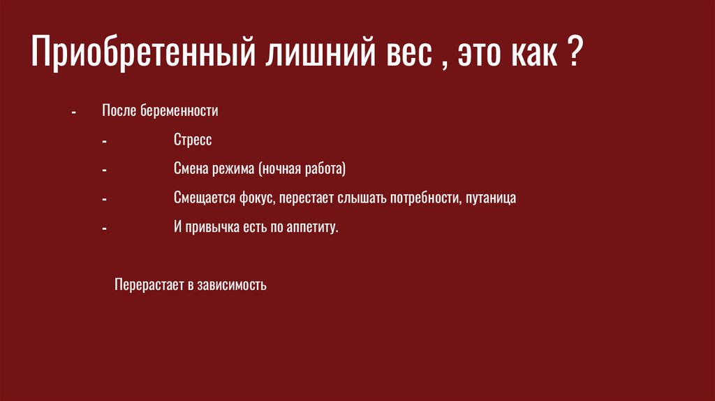 Приобретенный лишний вес , это как ?⁃