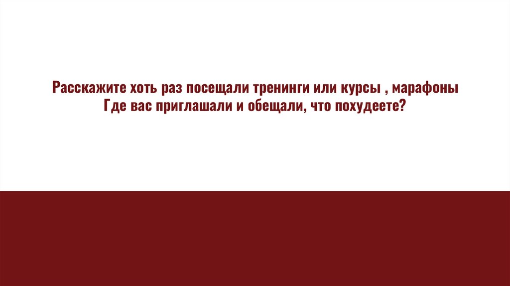 Расскажите хоть раз посещали тренинги или курсы , марафоныГде вас приглашали и обещали, что похудеете?
