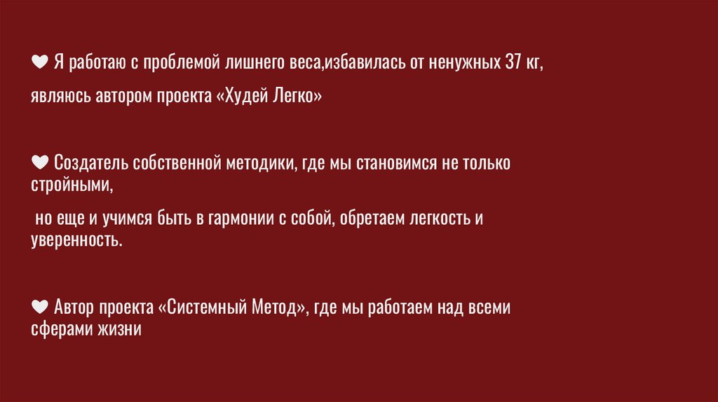❤ Я работаю с проблемой лишнего веса,избавилась от ненужных 37 кг,являюсь автором проекта «Худей Легко»