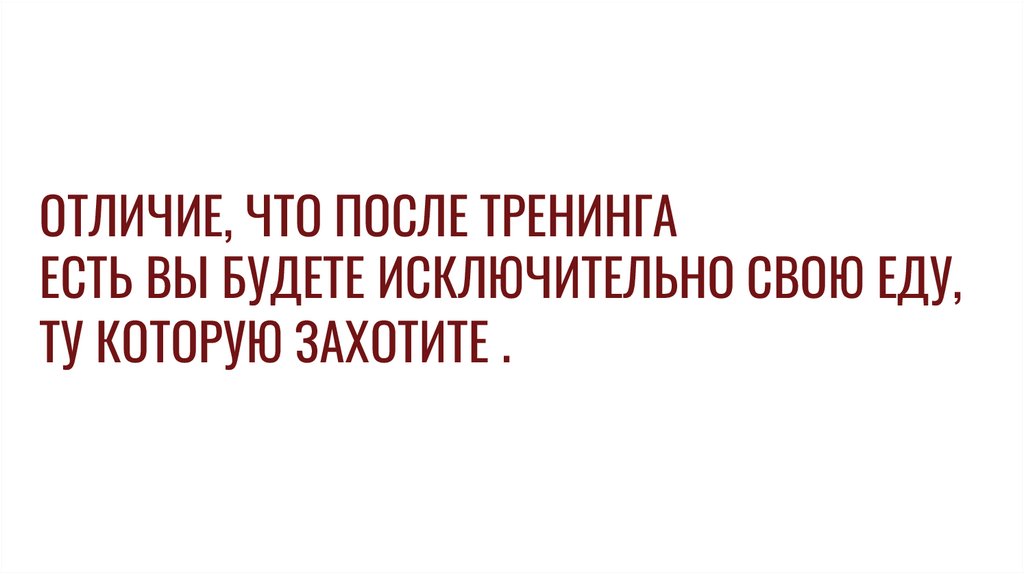 ОТЛИЧИЕ, ЧТО ПОСЛЕ ТРЕНИНГАЕСТЬ ВЫ БУДЕТЕ ИСКЛЮЧИТЕЛЬНО СВОЮ ЕДУ,