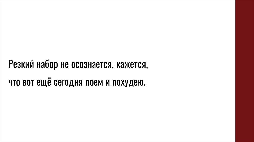 Резкий набор не осознается, кажется,что вот ещё сегодня поем и похудею.