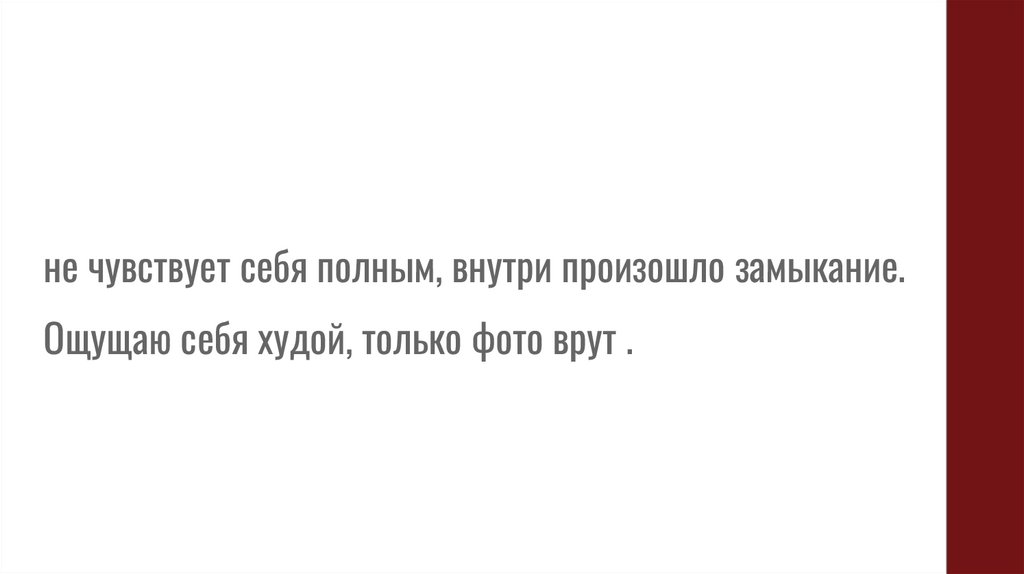 не чувствует себя полным, внутри произошло замыкание.Ощущаю себя худой, только фото врут .