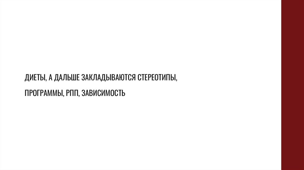 ДИЕТЫ, А ДАЛЬШЕ ЗАКЛАДЫВАЮТСЯ СТЕРЕОТИПЫ,ПРОГРАММЫ, РПП, ЗАВИСИМОСТЬ