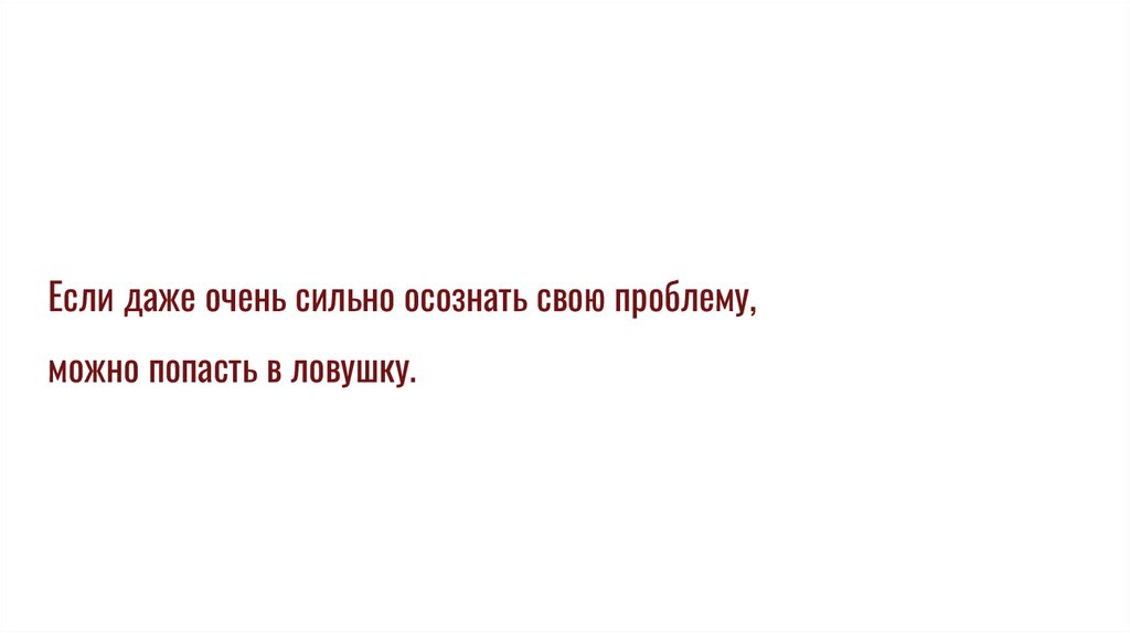 Если даже очень сильно осознать свою проблему,можно попасть в ловушку.