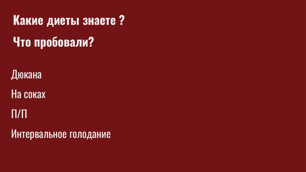 Какие диеты знаете ?Что пробовали?