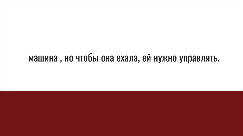 машина , но чтобы она ехала, ей нужно управлять.50.