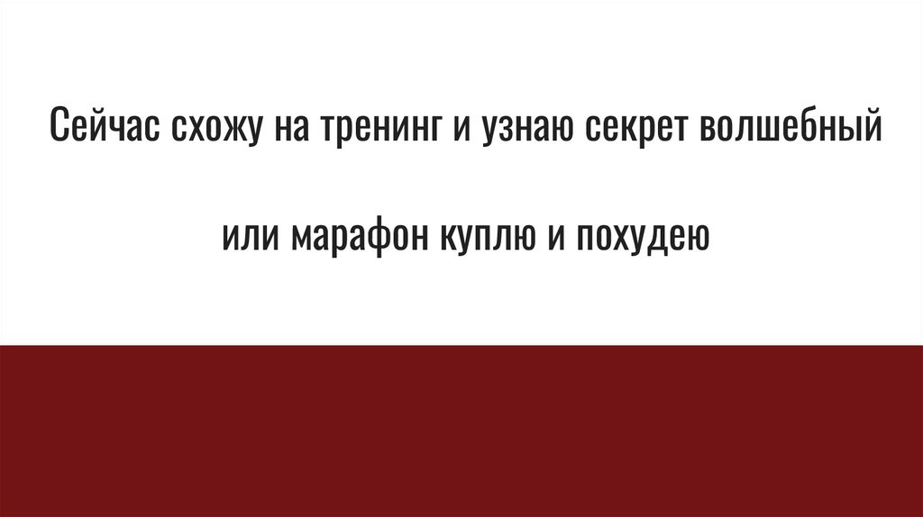 Сейчас схожу на тренинг и узнаю секрет волшебныйили марафон куплю и похудею
