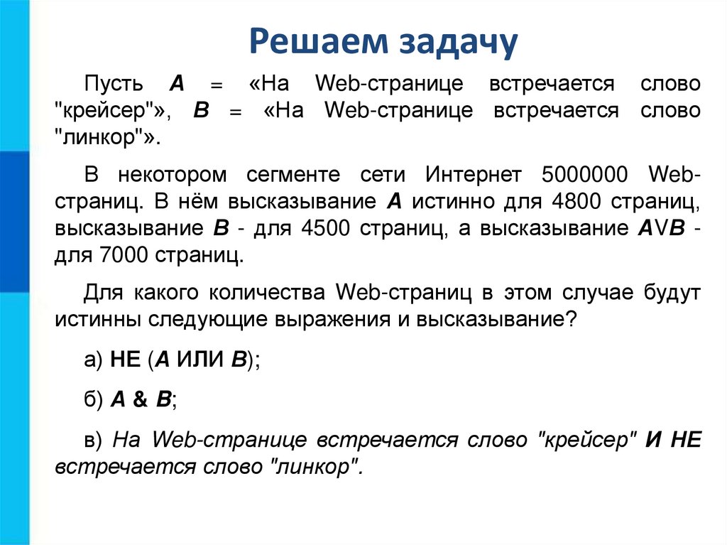 единицей (А = 1), а если ложно - нулём (В = 0).