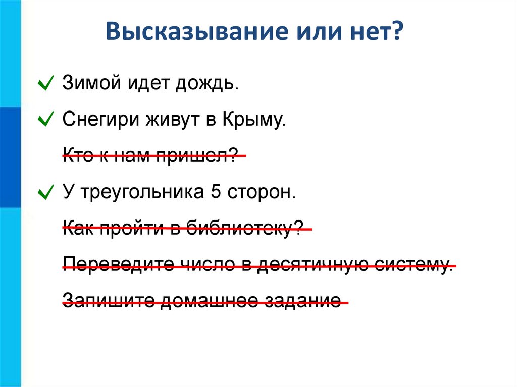 Высказывание или нет?Зимой идет дождь.
