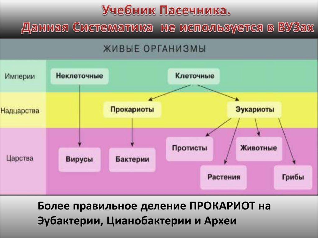 Более правильное деление ПРОКАРИОТ наЭубактерии, Цианобактерии и Археи