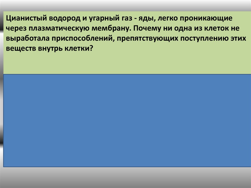 Цианистый водород и угарный газ - яды, легко проникающиечерез плазматическую мембрану. Почему ни одна из клеток не