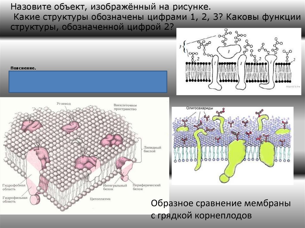 2) 1 – мембранные белки, 2 – двойной слой фосфолипидов, 3 – гликокаликс;