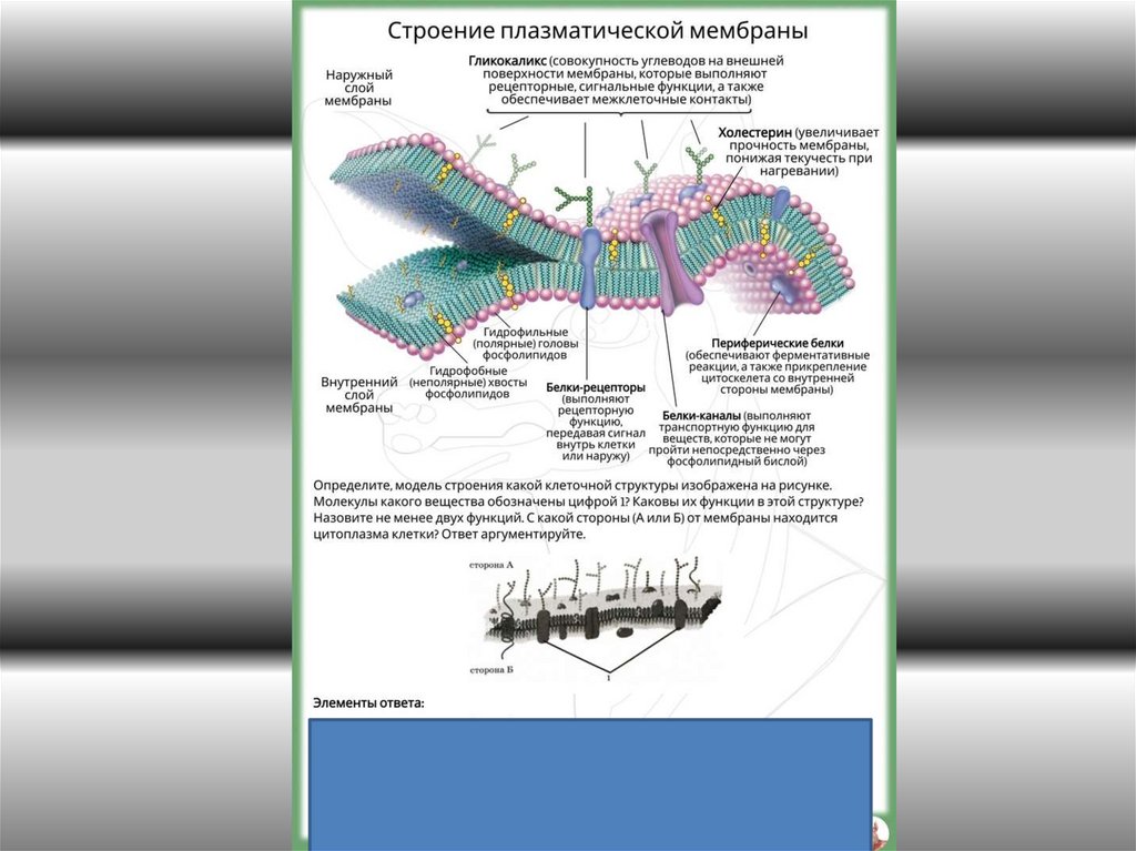 3) функция билипидного слоя – а) структурная, б) транспортная