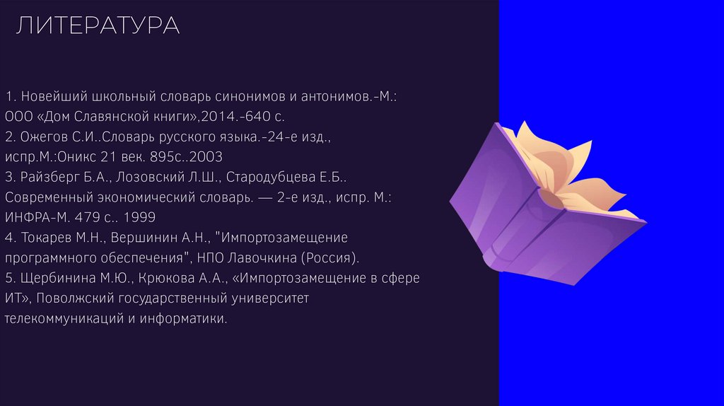 ЛИТЕРАТУРА1. Новейший школьный словарь синонимов и антонимов.-М.: