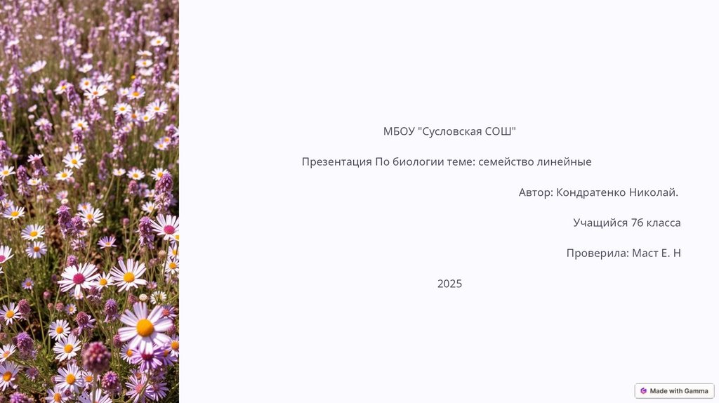 МБОУ "Сусловская СОШ"Презентация По биологии теме: семейство линейные