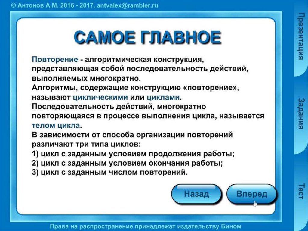 Основные алгоритмические конструкции. Повторение