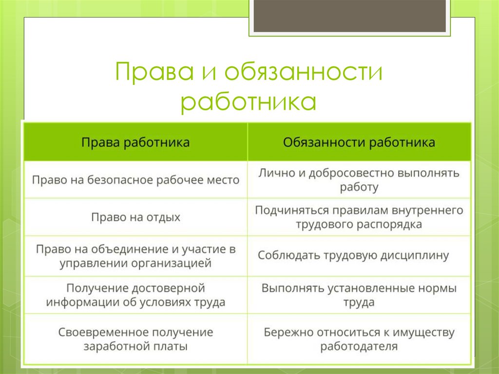 Права и обязанностиработника
