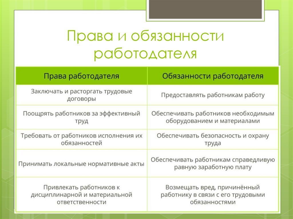 Права и обязанностиработодателя