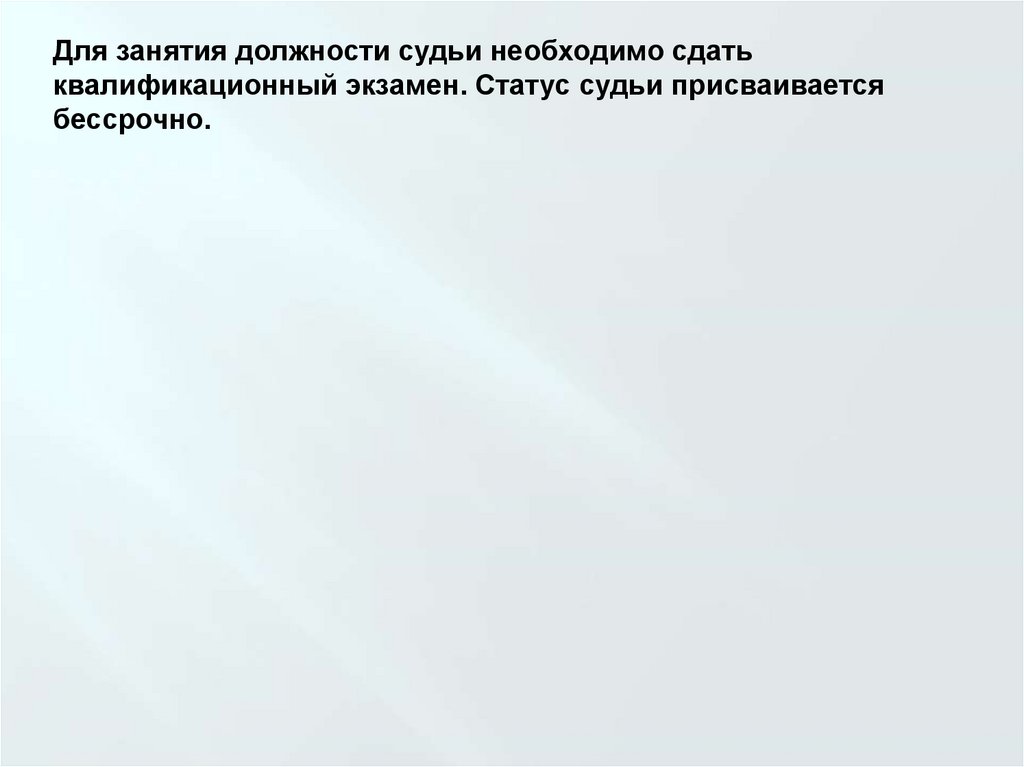 Для занятия должности судьи необходимо сдатьквалификационный экзамен. Статус судьи присваивается