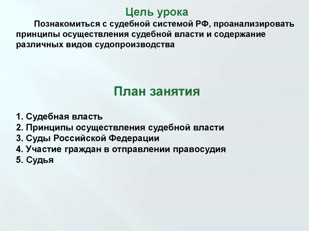 Цель урокаПознакомиться с судебной системой РФ, проанализировать
