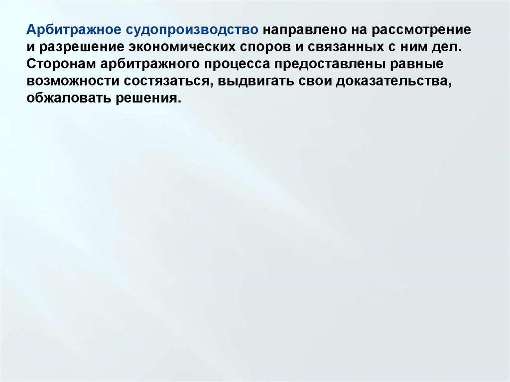 Арбитражное судопроизводство направлено на рассмотрениеи разрешение экономических споров и связанных с ним дел.