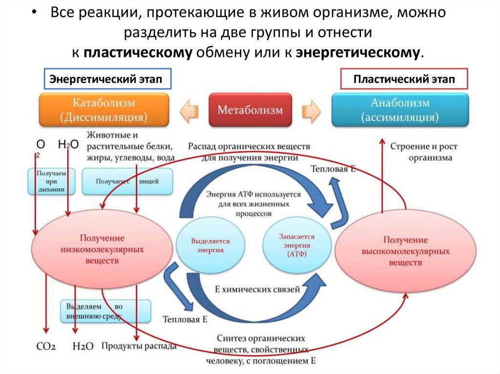 • Все реакции, протекающие в живом организме, можноразделить на две группы и отнести