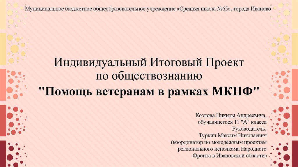 Муниципальное бюджетное общеобразовательное учреждение «Средняя школа №65», города ИвановоИндивидуальный Итоговый Проект