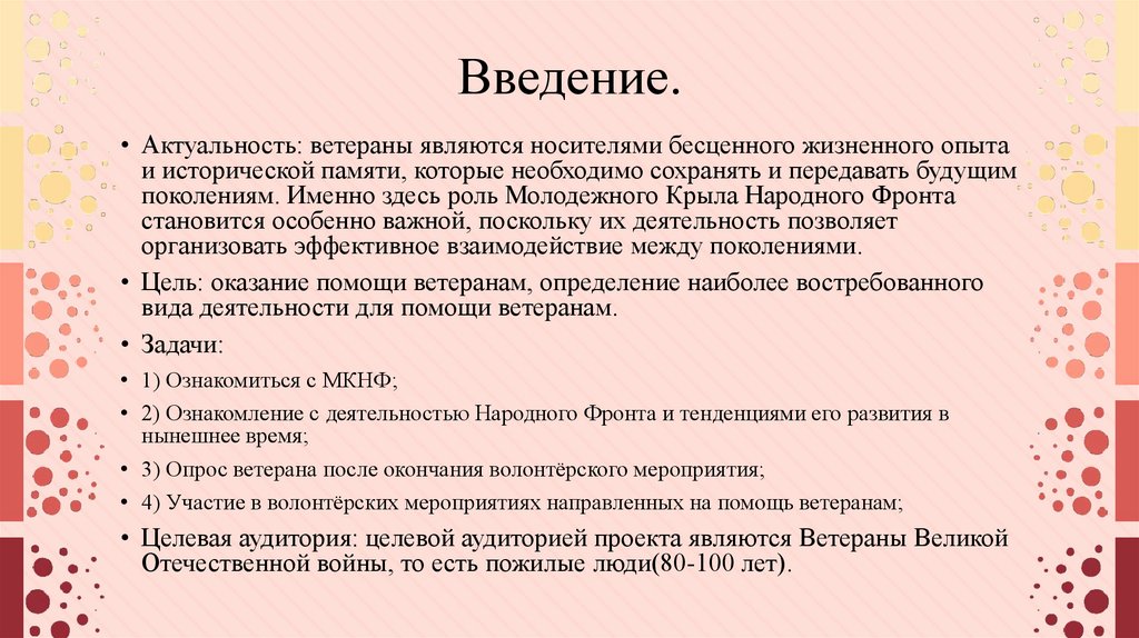 Введение.• Актуальность: ветераны являются носителями бесценного жизненного опыта