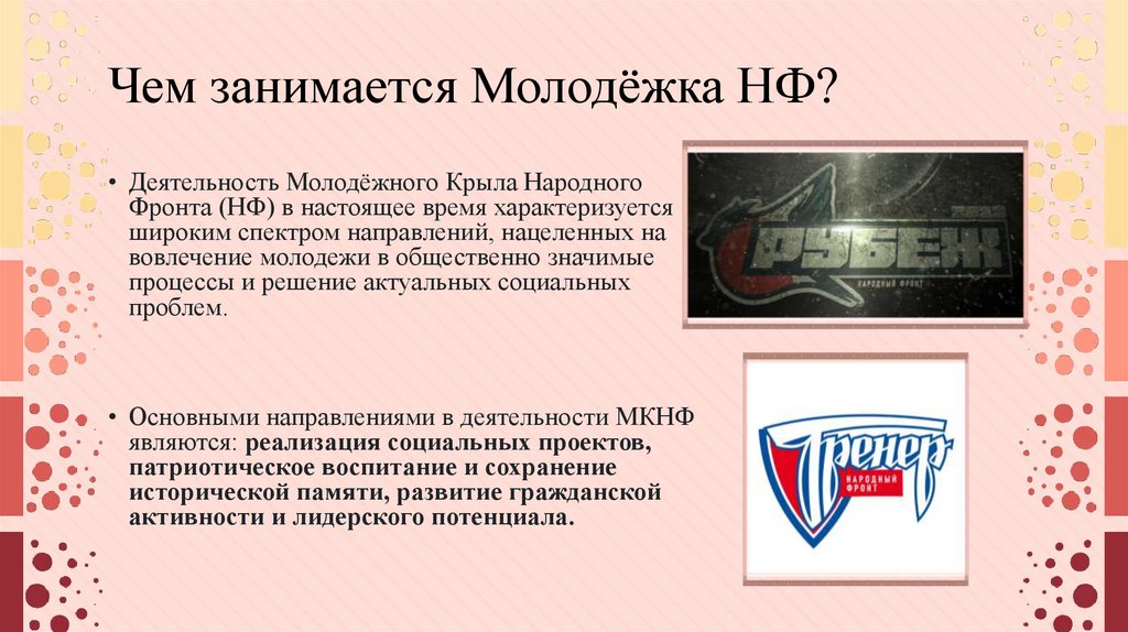 Чем занимается Молодёжка НФ?• Деятельность Молодёжного Крыла Народного