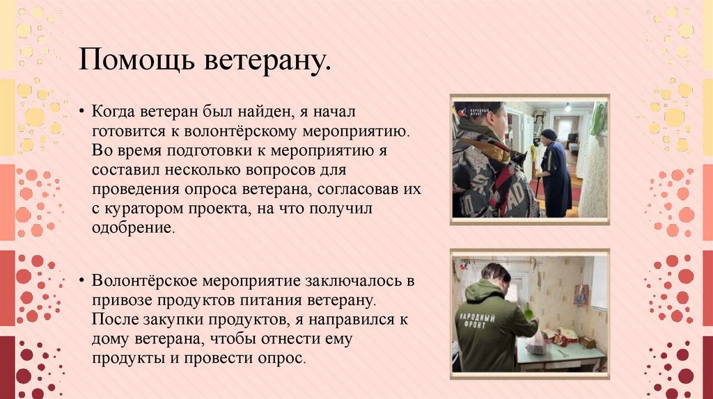 Помощь ветерану.• Когда ветеран был найден, я начал
