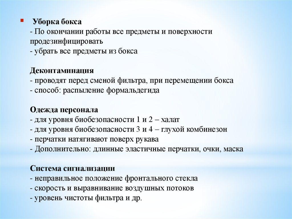 которым проводится работа в боксе