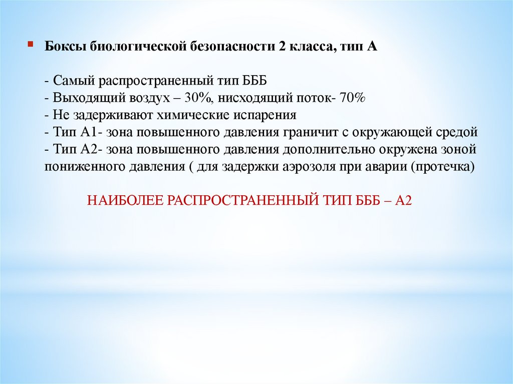 Боксы биологической безопасности 2 класса, тип А- Самый распространенный тип БББ