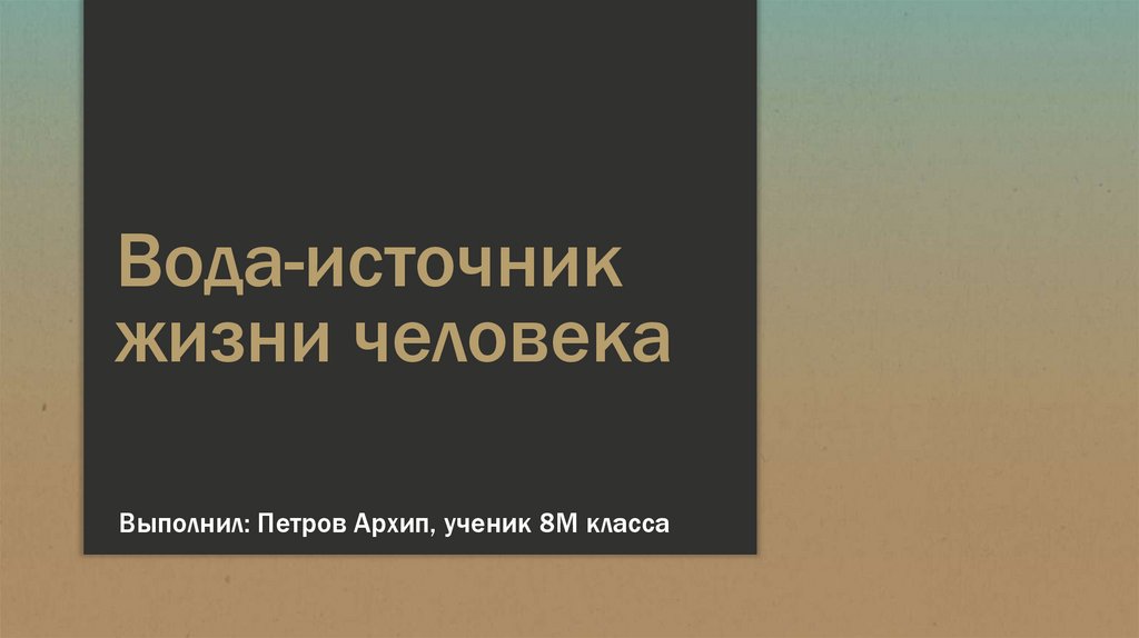 Вода - источник жизни человека
