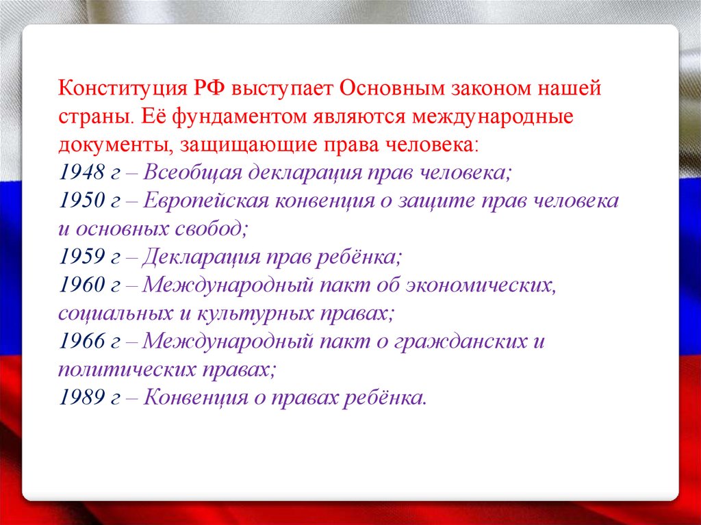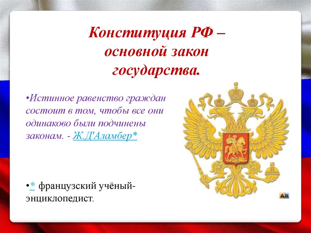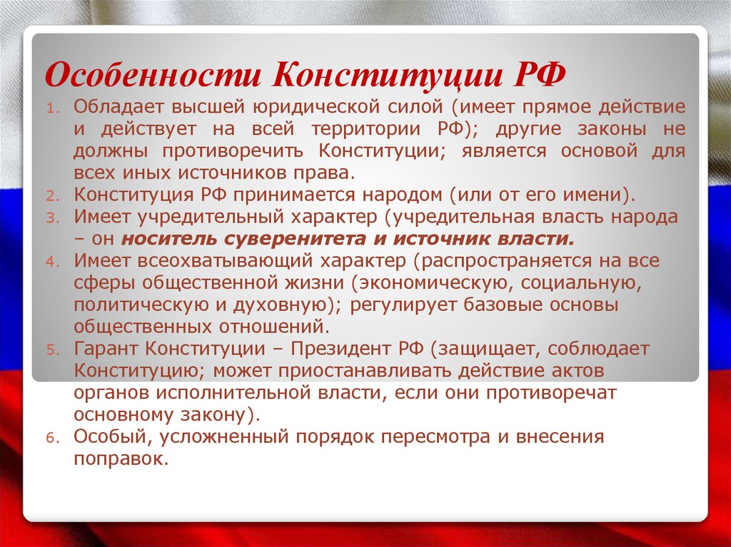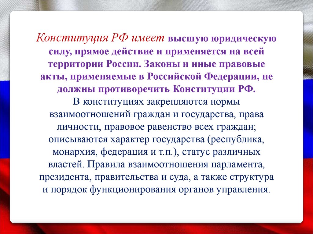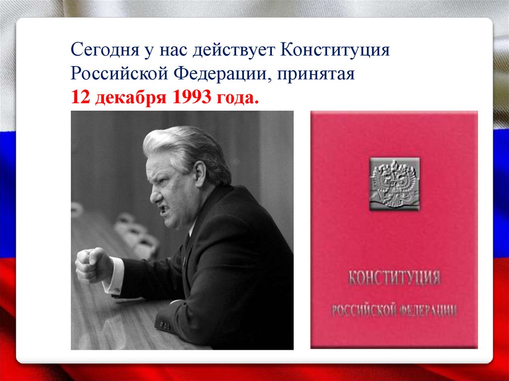 Сегодня у нас действует КонституцияРоссийской Федерации, принятая