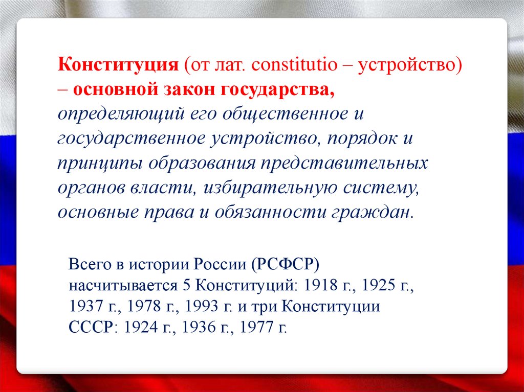 Конституция (от лат. constitutio – устройство)– основной закон государства,