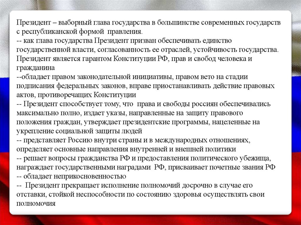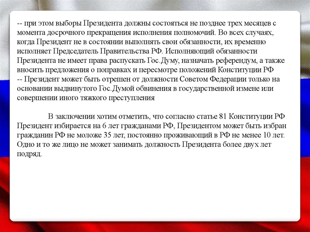 В заключении хотим отметить, что согласно статье 81 Конституции РФ
