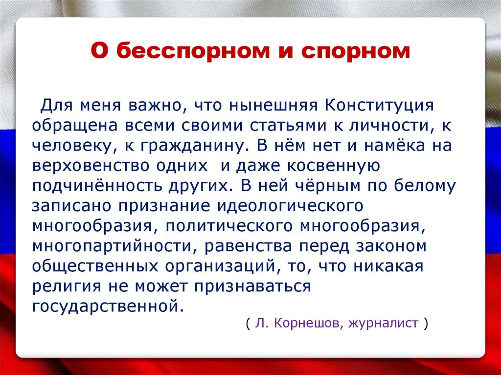 О бесспорном и спорномДля меня важно, что нынешняя Конституция