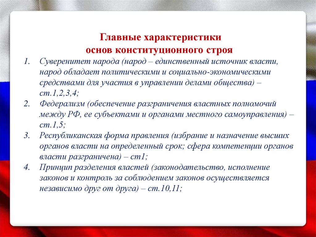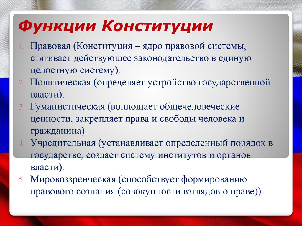 1. Правовая (Конституция – ядро правовой системы,стягивает действующее законодательство в единую